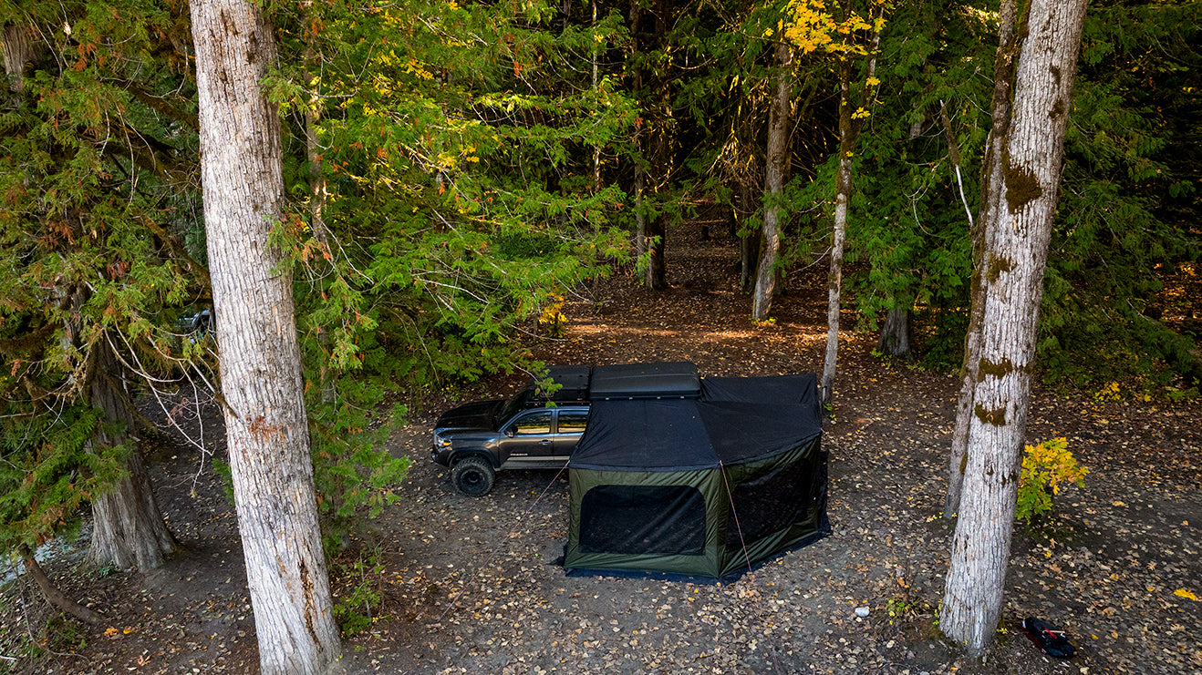The ultimate outdoor experience! Combine your rooftop tent with an ES Awning for the best camping setup.