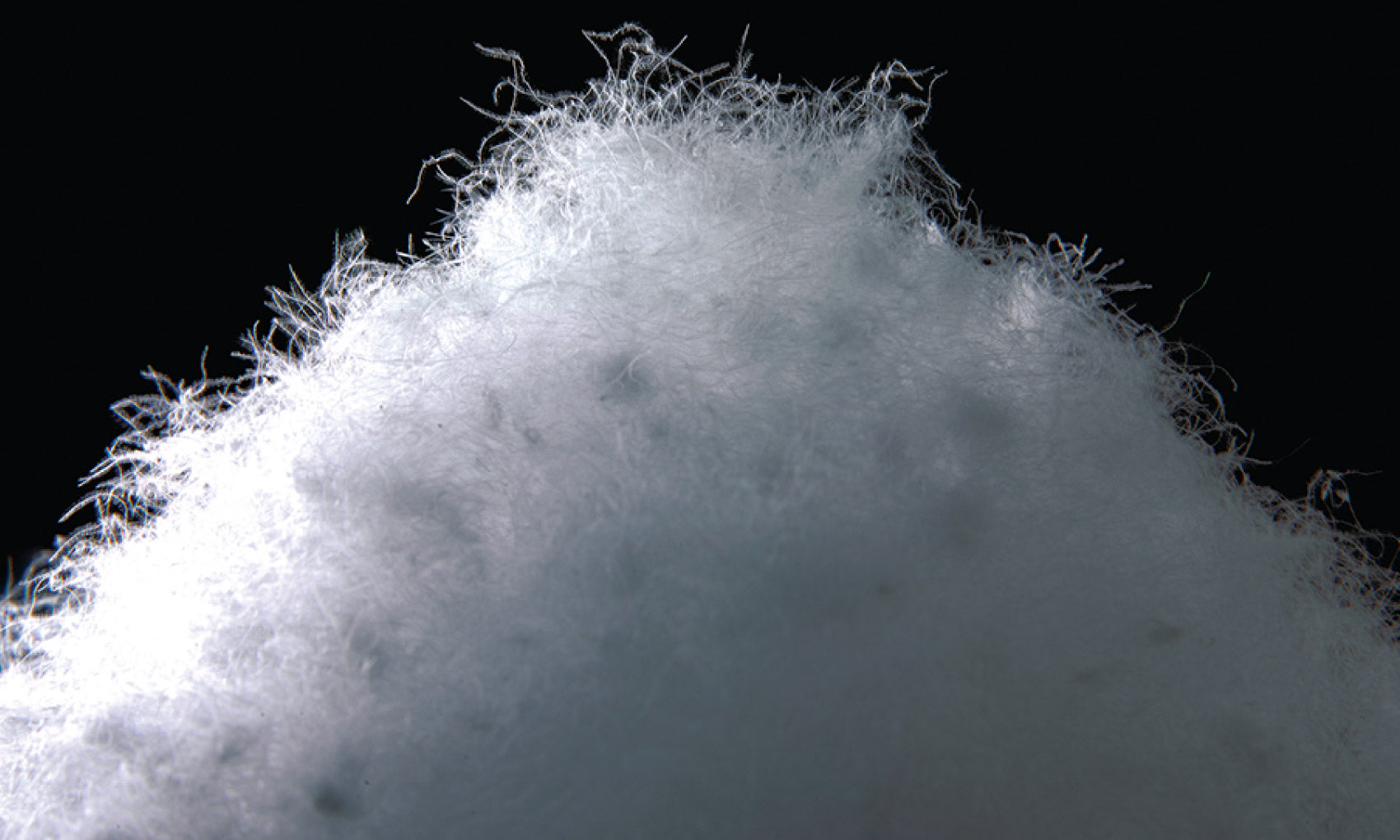 The down from European White Ducks (DX) has been processed with ultra water-repellent treatment, resulting in a high-quality, high-performance material with a fill power of 770. The resin of the water repelling agent binds with the down feathers at the molecular level, and the fine particles create a barrier to prevent the intrusion of water. It is the perfect down that allows the transmission of moisture vapor but does not absorb water. 770FP Down