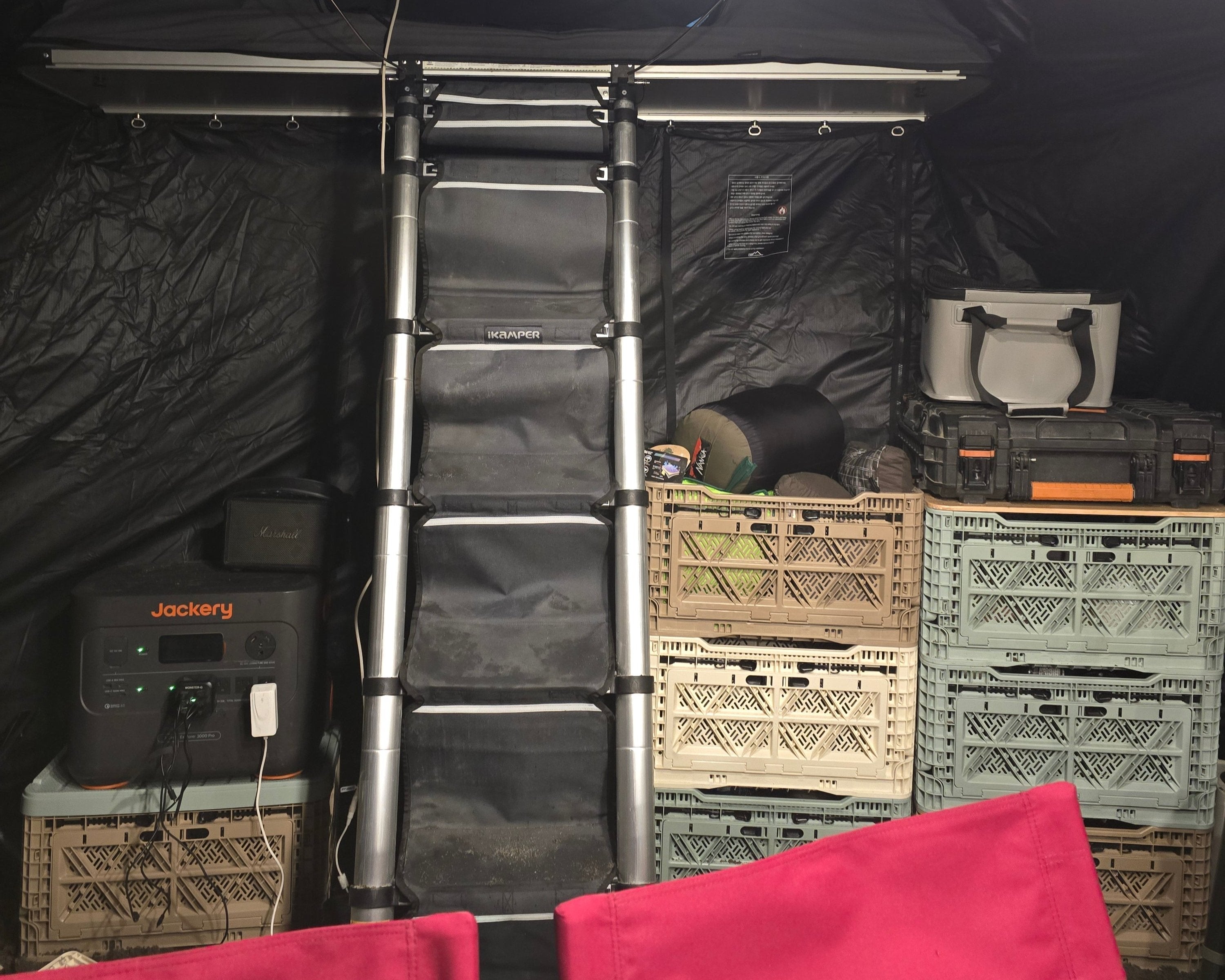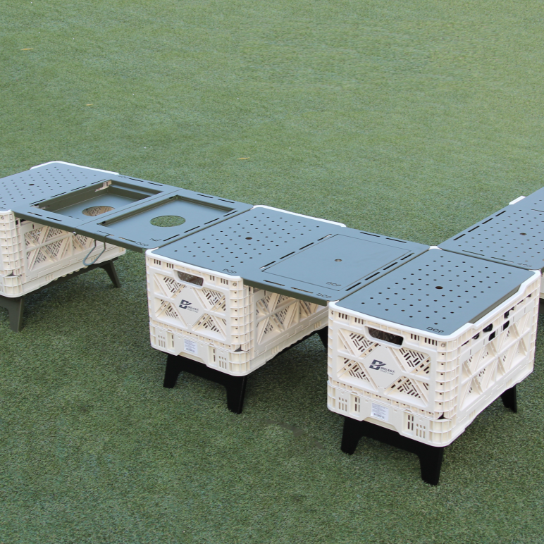 Designed to optimize your car storage space with its collapsible and stackable design, it also doubles as an organizer inside your tent to keep everything neat and accessible. Need a table? Add the rids and transform it into a sturdy surface, or pair it with a burner to create a versatile IGT cooking station.