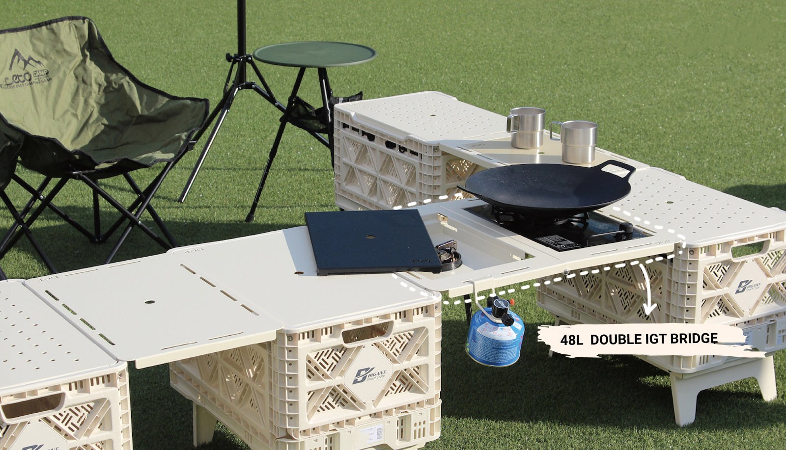 The 48L Double IGT Bridge is an ultra-light aluminum connector that reduces weight by 60% and supports both one- and two-burner configurations for efficient outdoor cooking. Its modular expandability and eco-friendly coating provide excellent heat and corrosion resistance for rugged use.