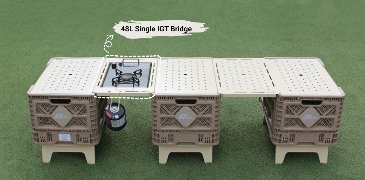 The 48L Single IGT Bridge fits one-burner plates or IGT cover one unit and integrates smoothly with DCP components. Its eco-friendly coating ensures strong heat and corrosion resistance outdoors. It offers reliable performance and clean aesthetics for any setup.