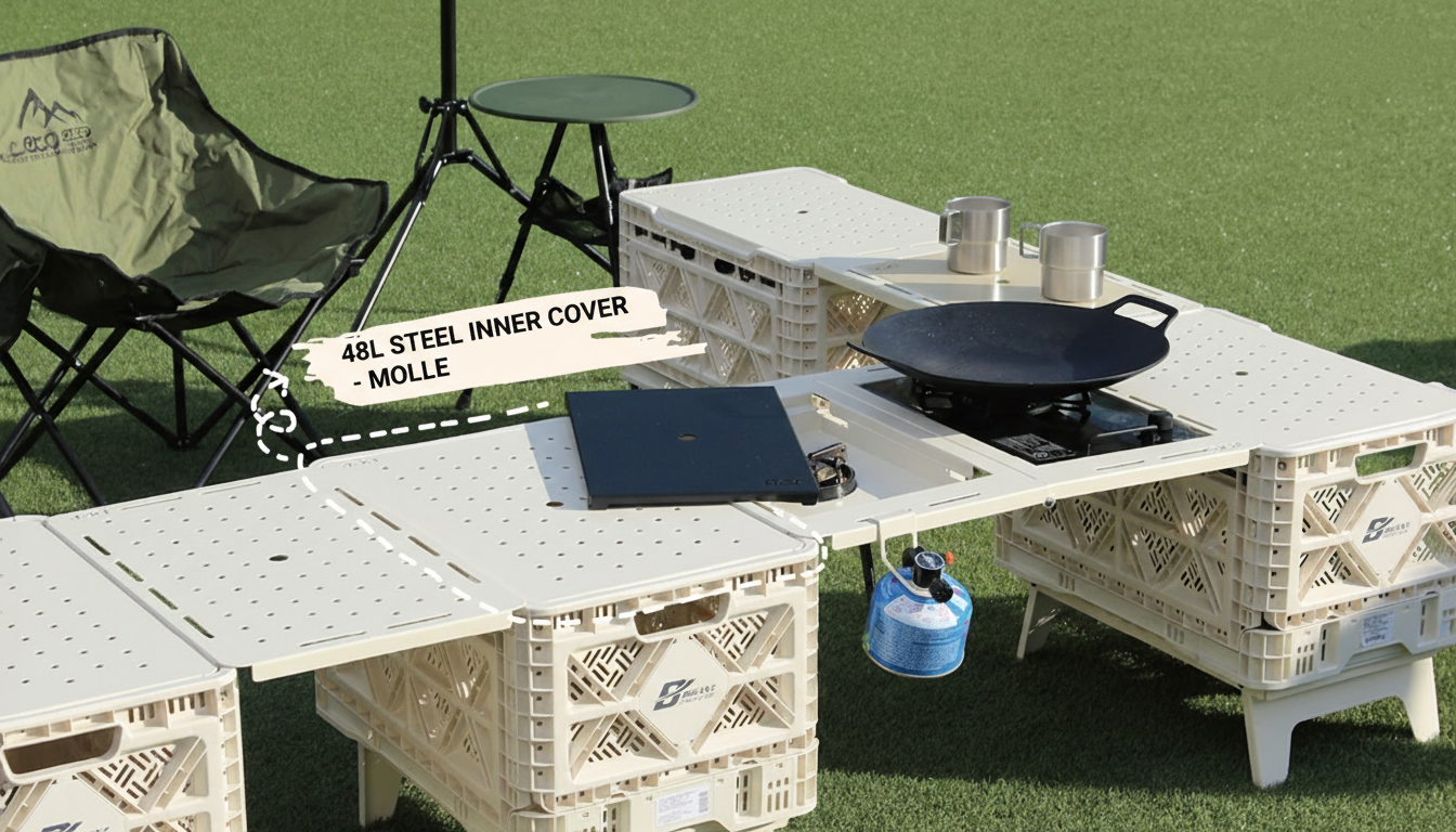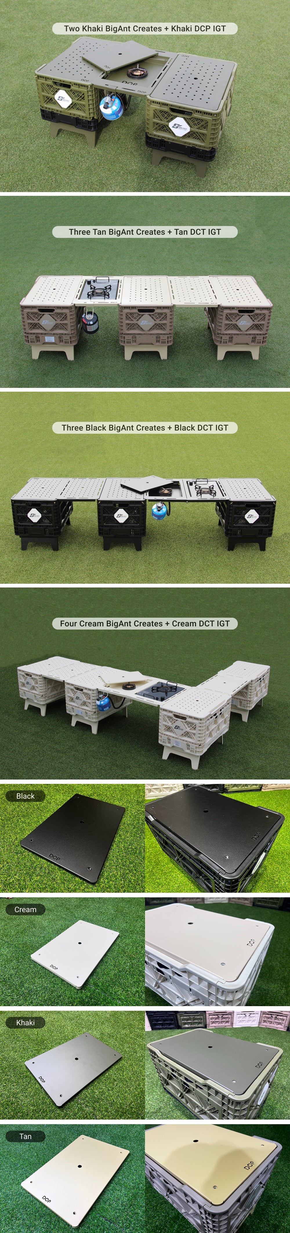 Engineered exclusively for 48L BigAnt Crates, lightweight-aluminum inner lid locks in securely and converts your crate into a sturdy table surface. It packs slim at 19.7" × 12.6" × 0.7", weighs just 1.81 lb (0.82 kg), and comes in Black, Khaki, Tan, or Cream with eco-friendly powder coating.