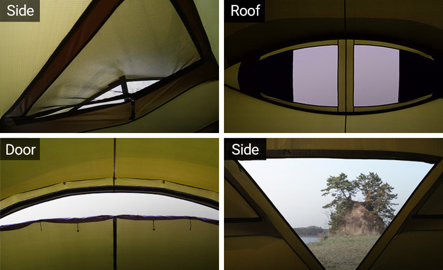 Roof and door vents, along with four side vents, circulate fresh air and help stop condensation, keeping the interior comfortable.