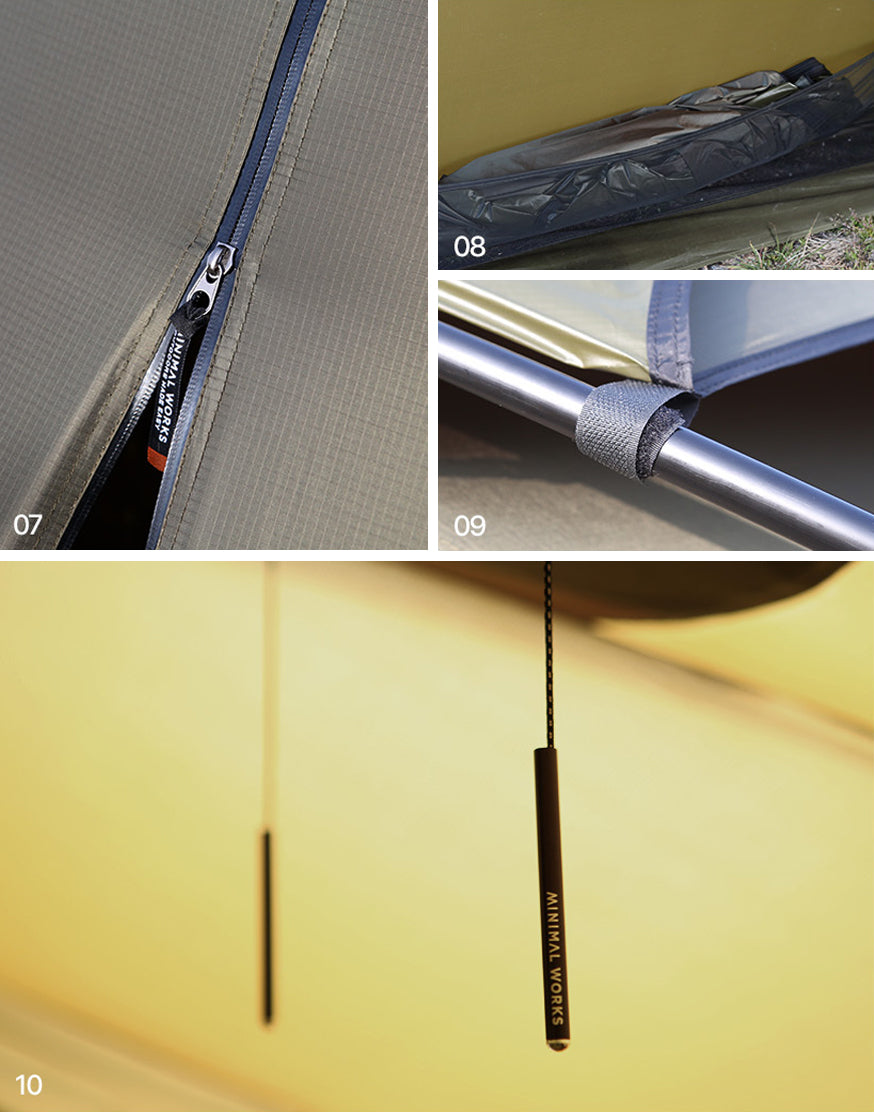 MinimalWorks Agora Vestibule Mesh Window is designed to attach to the Agora Vestibule. It offers a refreshing open atmosphere while protecting against sudden weather changes, allowing for uninterrupted camping comfort. Enjoy a pleasant indoor environment by combining the wide vestibule space with the mesh window.