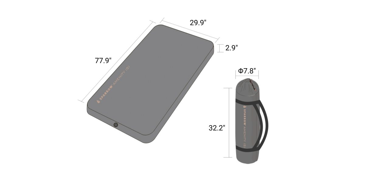 The Amenity - Single is a soft and warm outdoor mat made with Peach-Suede fabric, 2.9"(7.5cm) high-density PU foam, 3D sidewalls, TPU coating, non-slip base, and roll-up storage for versatile comfort and convenience.