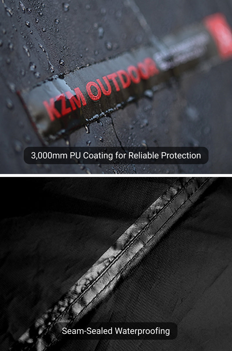 While seams are seam-sealed, zipper areas such as doors and windows are not fully waterproof. Use caution during heavy rain.