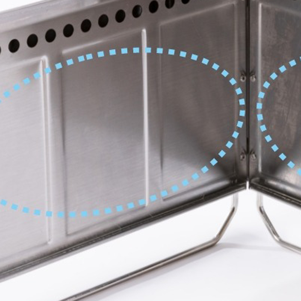 Engineered with precision press-forming technology, the fire pit’s stainless-steel panels are strengthened to withstand extreme heat without warping. The process enhances the metal’s tensile strength and structural stability, ensuring long-term durability and shape retention even after repeated high-temperature use.
