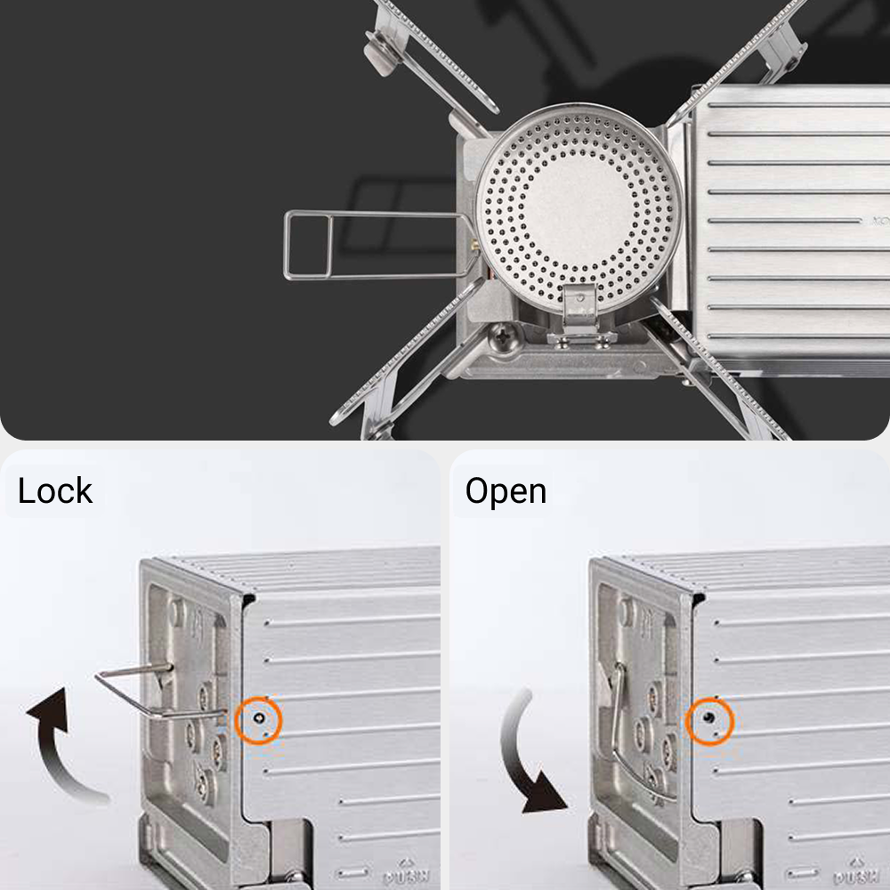 The stove features a full stainless steel body, providing high corrosion resistance so it will not easily rust. Its exceptional durability makes it reliable for use in harsh outdoor environments and ensures long-lasting performance.