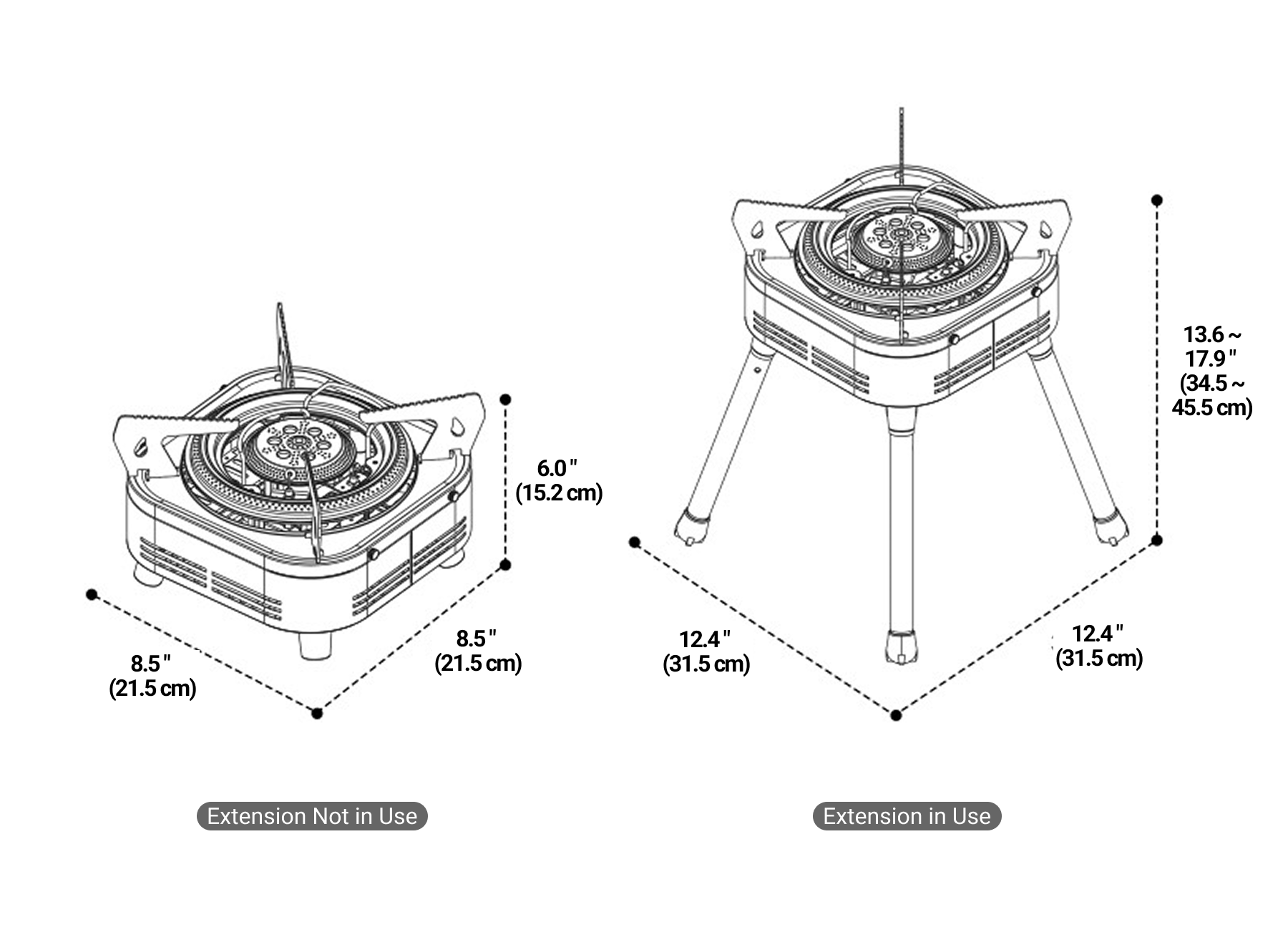 The Dual Power Stove D offers an impressive 10,000 Kcal output with both inner and outer burners providing stable flames. Its four-level adjustable height ensures versatile use across different outdoor environments.
