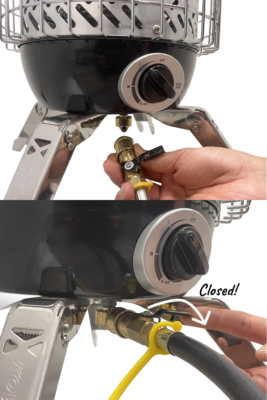 Stay Warm Without the Worry! The Giga Sun is a Propane Tank connected heater (propane gas) with 6,000 Kcal radiant heat efficiency, triple gas safety system, stay-cool handle, and portable folding design for safe and convenient outdoor heating.
