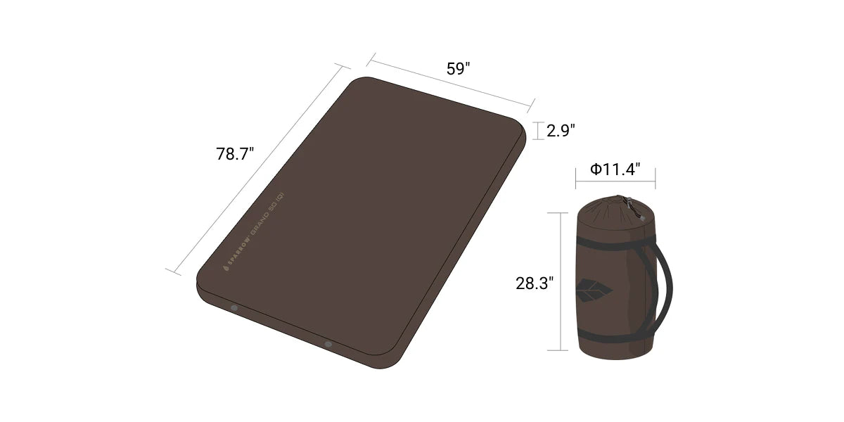 This is the widest outdoor mat available, made with a single 59"(150cm) PU foam and seamless 50D stretch fabric. With a queen-size specification for 2.5 people, it can be used as a mattress substitute at home or as a more spacious two-person mat at the campsite.