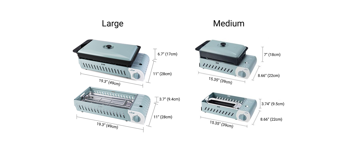 • With Hot Pot Pan: 19.3"(W) × 11"(D) × 6.7"(H)