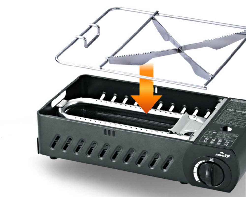 Attach the included pot support to use the stove as a gas range. This allows you to place a pot on top for boiling or simmering, easily accommodating a variety of cookware. It's simple to attach and detach, adding to its convenience.