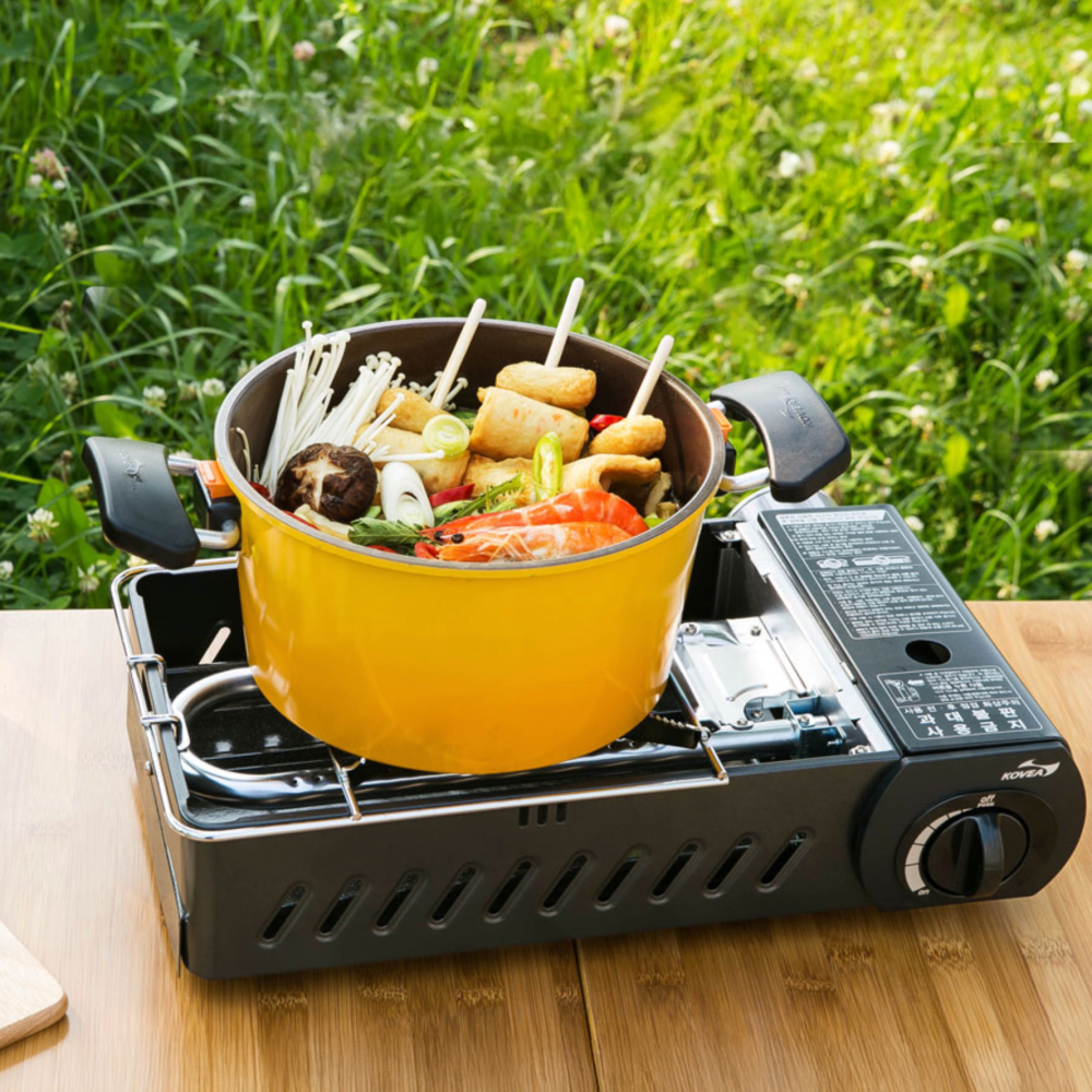 The Guibada All-in-One Plus Medium is an all-in-one camping cooker for hot pot, steaming, grilling, and stove-top cooking.