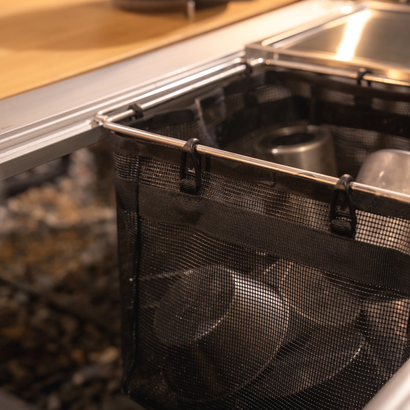 Avec sa conception profonde et monobloc, cet espace offre des options de configuration polyvalentes et sert de solution de rangement pratique pour la vaisselle ou le matériel de camping.
