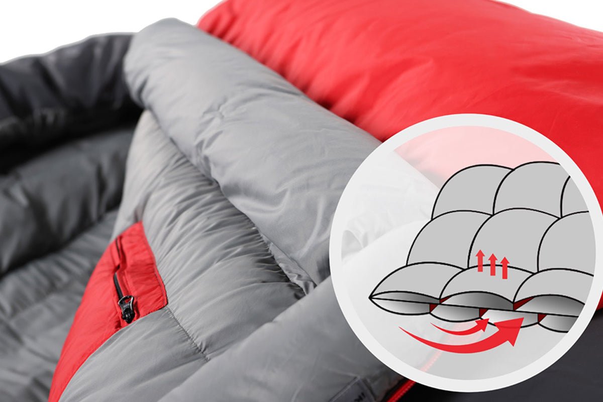 Our baffled design keeps the down filling lofted and securely in place, preventing heat loss.