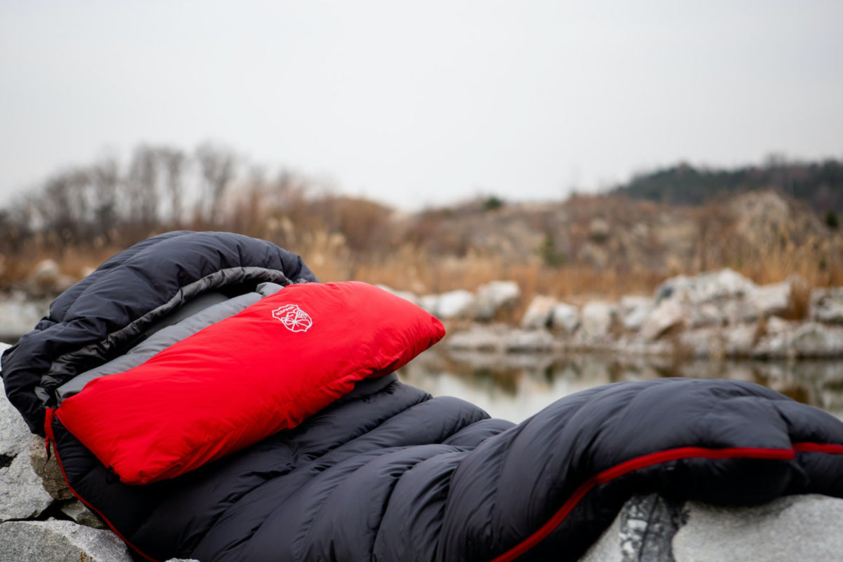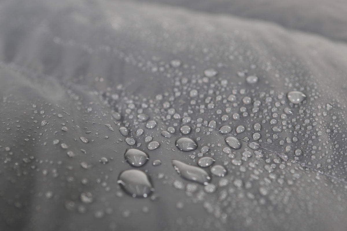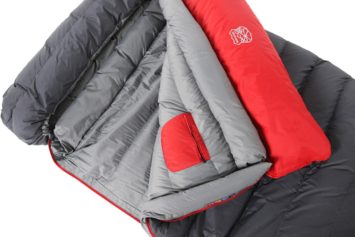 The sleeping bag is treated with water repellent to protect the down filling while maintaining ventilation. Simply wipe it down when dirty.
