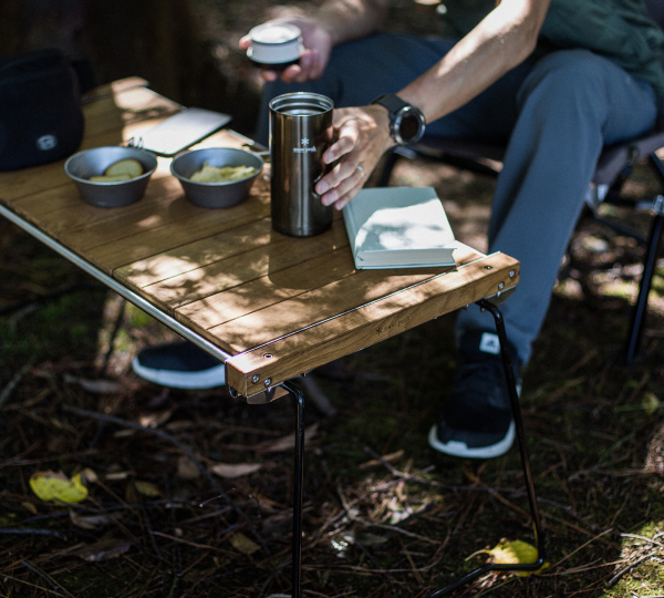 The Iron Grill Table Slim is a modern Iron Grill Table. The slim is made of teak wood that is highly weather resistant. The Iron Grill Table Slim features six wood panels, frame with 2 foldable legs, and a carrying case. Use it in the home, garden or campsite for a cooking or dining space. Remove any of the six wood panels to insert a stovetop or use as a workspace.
