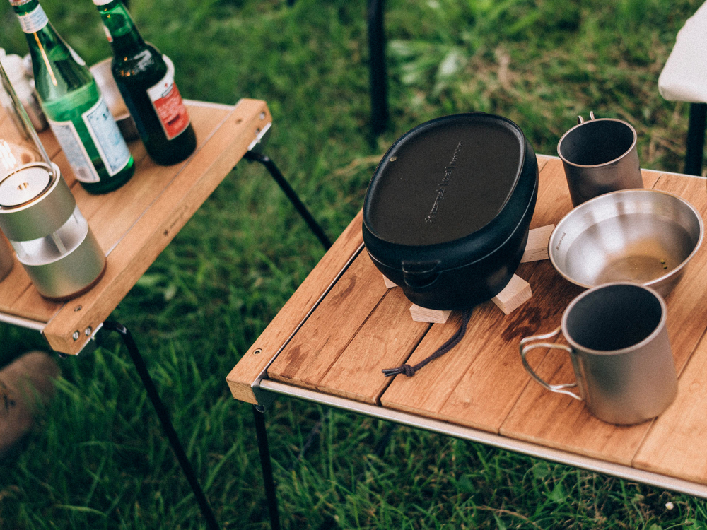 The Iron Grill Table Slim offers a sleek, contemporary design suitable for cooking or dining at home, in the garden, or at a campsite. Its versatile surface adapts easily for meal prep or serving space.