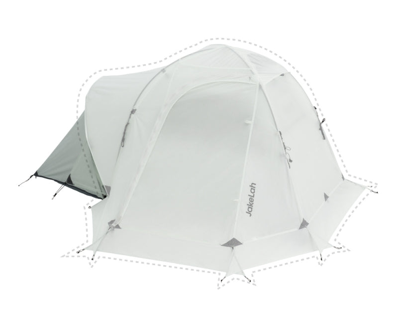 Meet the J.sololite, a true four-season ultralight tent that weighs in at just 965g (2.1 lbs), including both the tent body (630g) and poles (335g). Designed with three poles instead of two, it offers a noticeably larger and more comfortable interior without adding weight. Every gram was shaved through custom-engineered JakeLah materials, no PVC, no unnecessary bulk, just pure, purposeful performance.