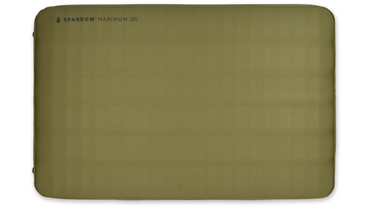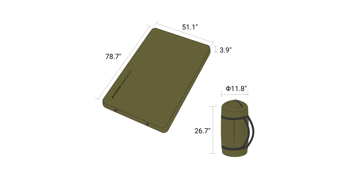 The Maximum - Double is a 3.9"(10 cm) high, wide outdoor mat with 3D sidewalls, TPU coating, non-slip base, and roll-up storage, providing comfortable and safe sleep for two people.