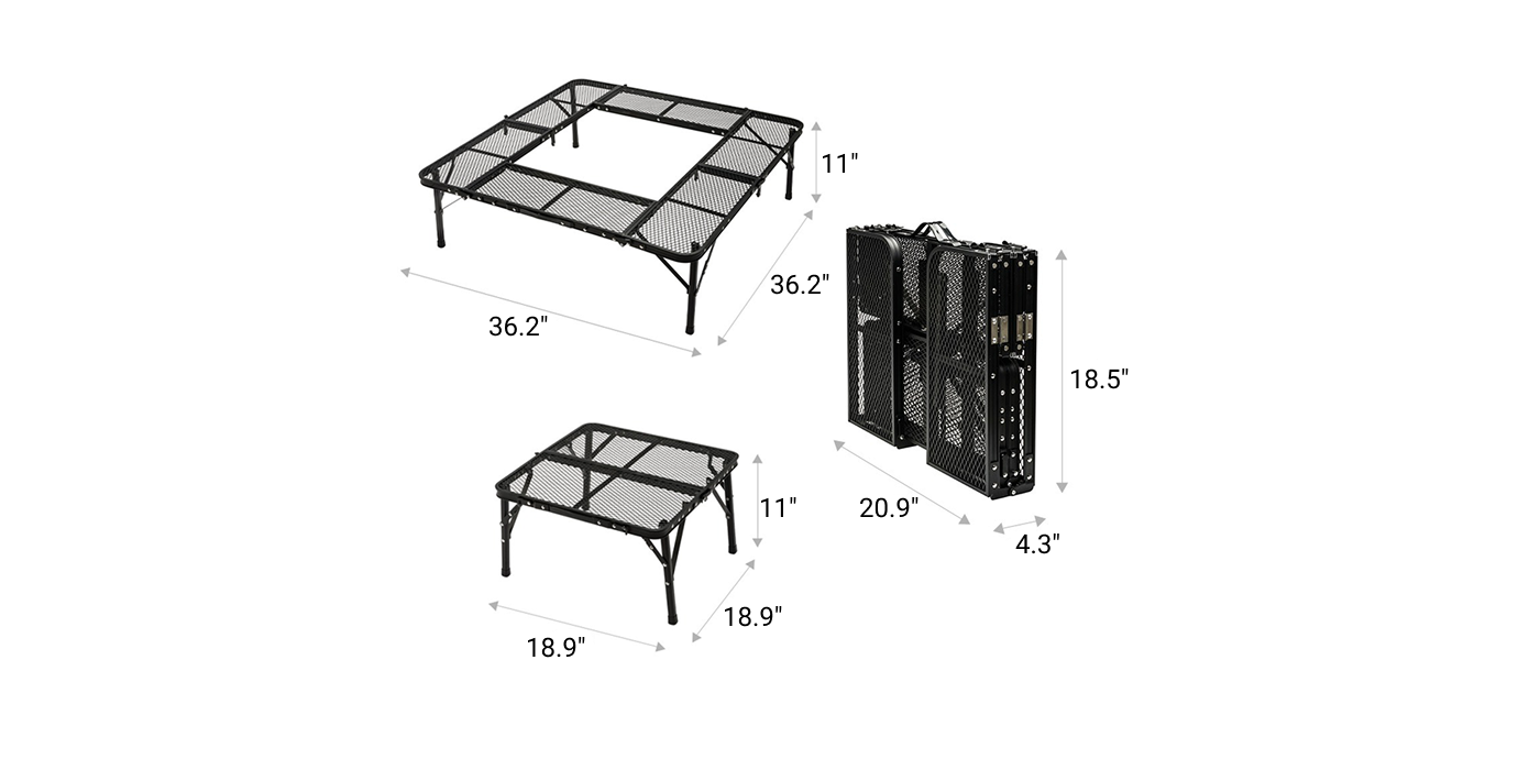 • Firepit Table(Folded): 20.9"(W) × 18.5"(D) × 4.3"(H)