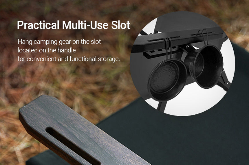 Conveniently hang camping gear on the handle’s multi-purpose slot for easy access.