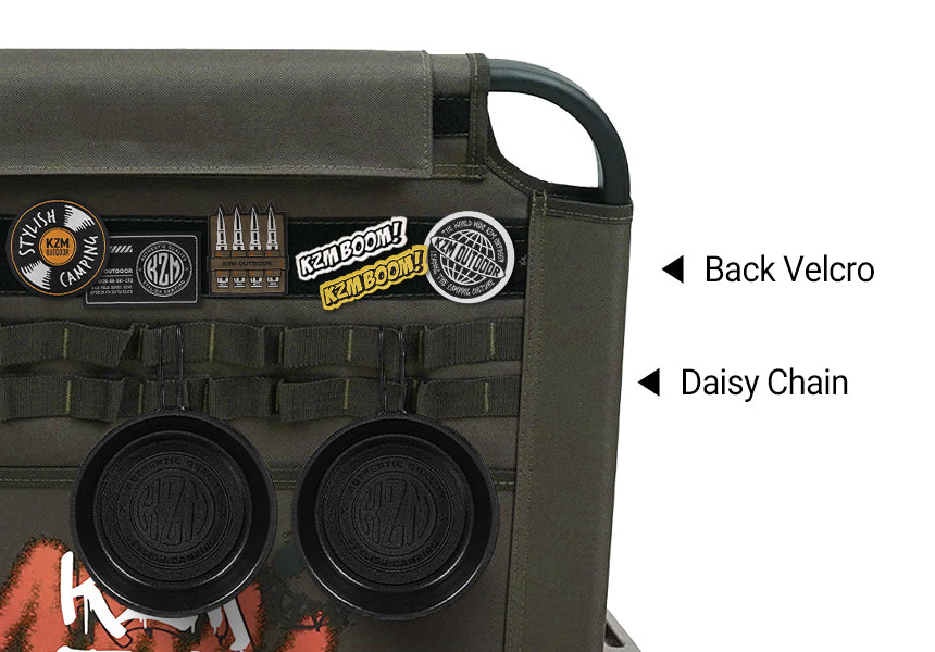 Attach camping accessories to the daisy chain for storage, and use the rear Velcro panel to attach patches, camping accessories, or extra gear as needed.