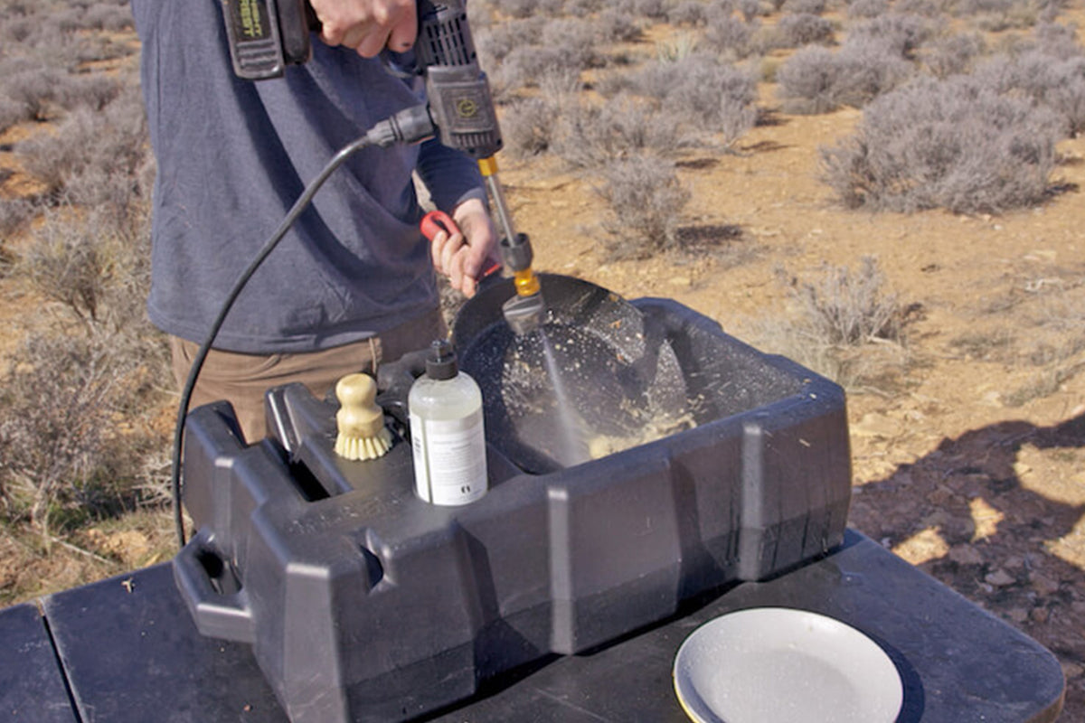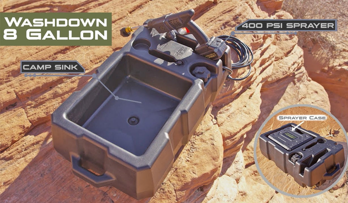 Wash your dishes, pots, and pans on the go -even let them soak overnight! The Rain Basin Washdown is perfect for outdoor enthusiasts that love to do some cooking at camp. Make clean up easy with our many pressure washer and large capacity sink. Blast grease off pans even faster than you could at your in home kitchen!