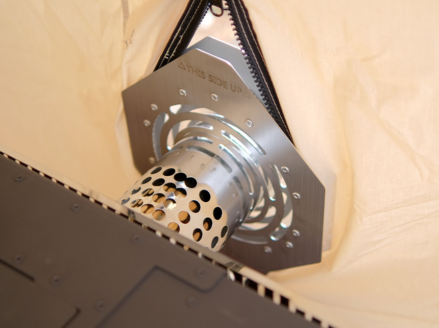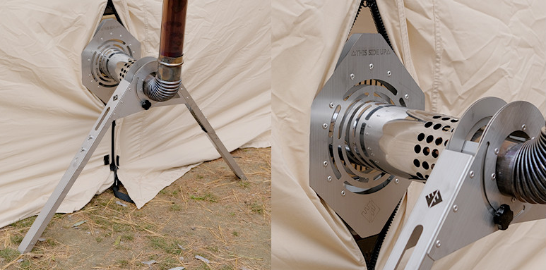 • Utilisation du poêle dans les tentes : Idéal pour acheminer en toute sécurité le tuyau de cheminée à travers la paroi de la tente, évitant ainsi d'endommager le tissu de la tente et garantissant une installation sécurisée.