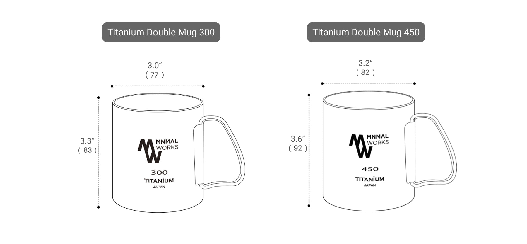 • 450ml : 3.6"(L) × 3.2"(W) (9.2cm × 8.2cm)