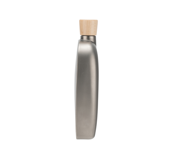 The Titanium Flask has been renewed with a unisex design suitable for everyday use. Its gender-neutral appearance allows it to fit seamlessly into daily life. The wooden cap provides a soft, natural feel while reducing friction when screwing it on. The back of the flask is rounded, and the front edge is refined using the latest welding techniques.