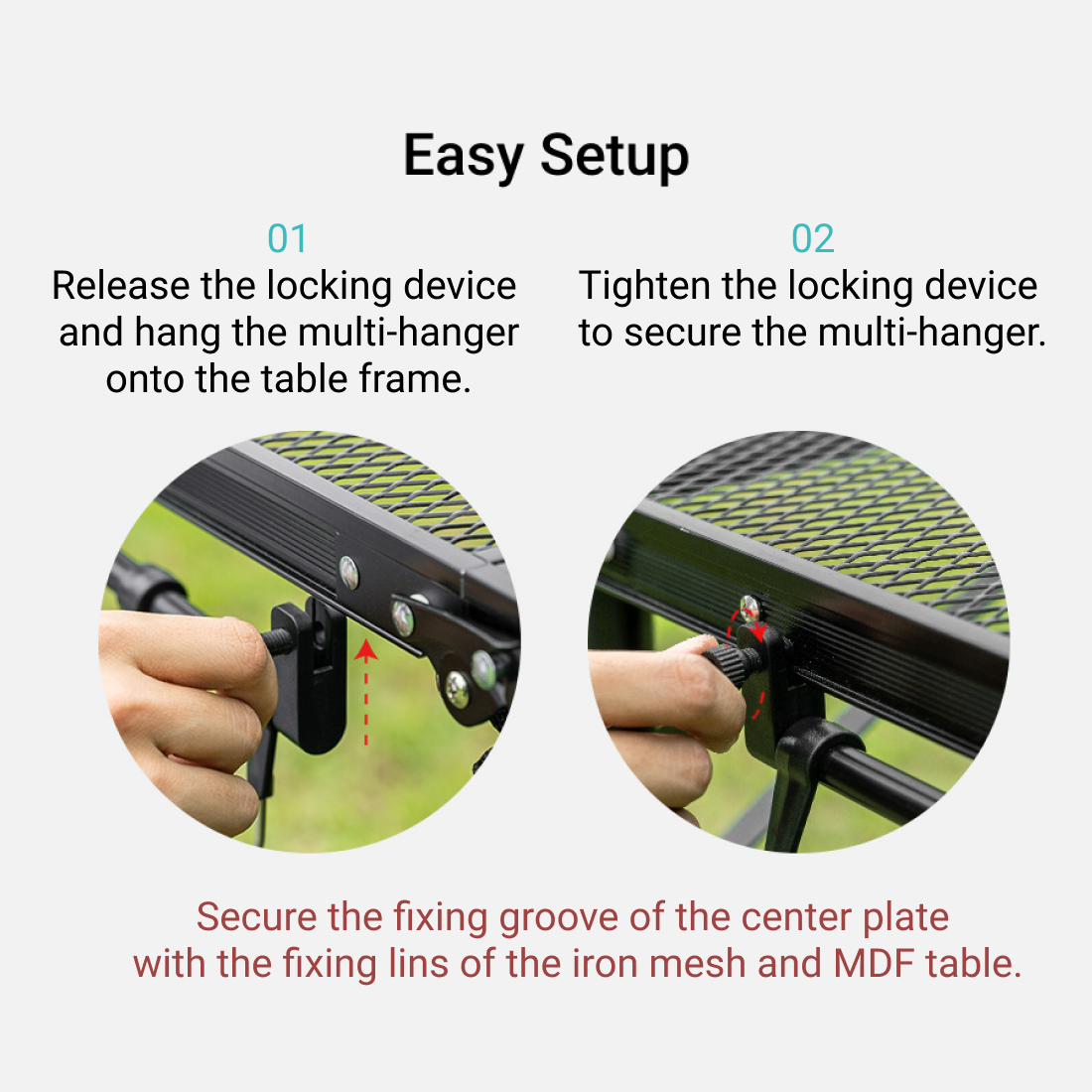 With a simple installation method, the table and multi-hanger can be securely fastened, ensuring stability on even, full-length tables.