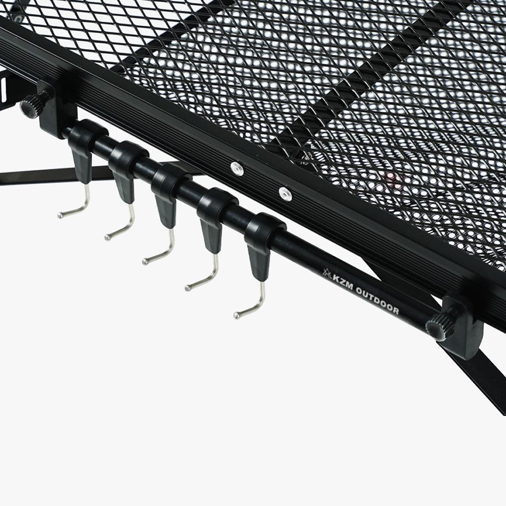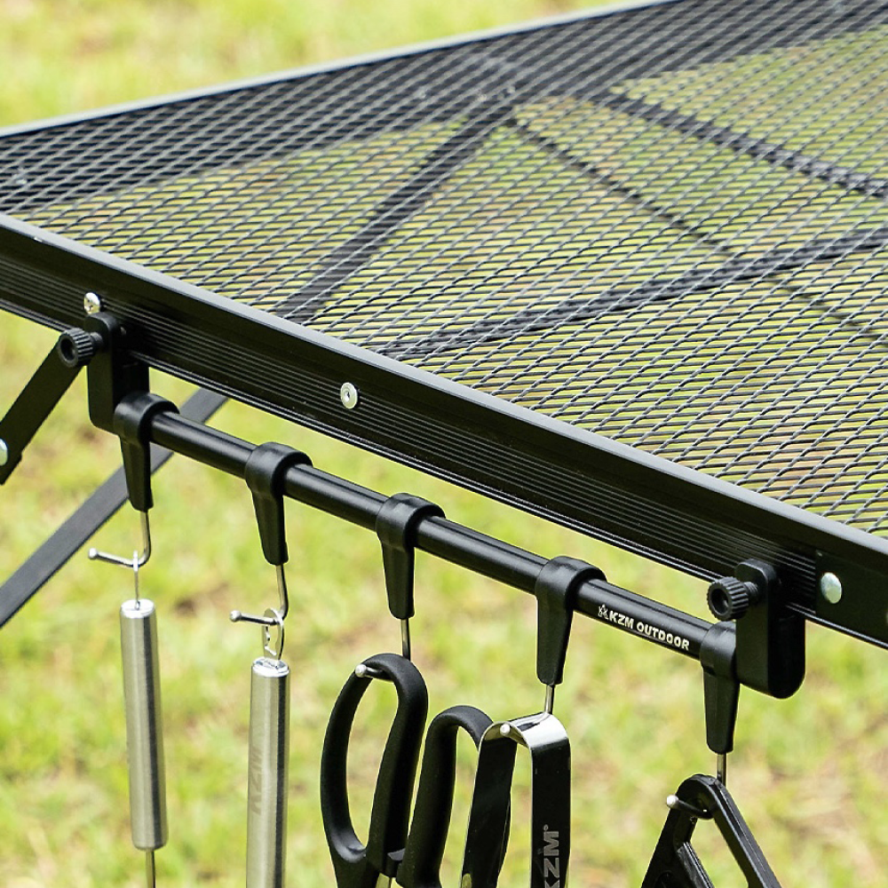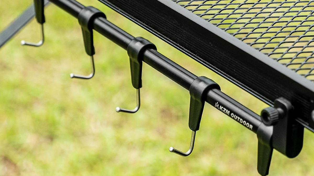 The Union Iron Multi Hanger features adjustable hooks for hanging cooking utensils and other items. Made from durable aluminum, it is sturdy and easy to install.