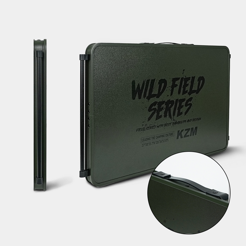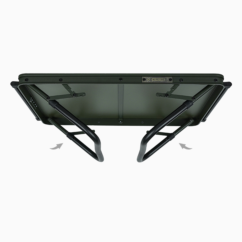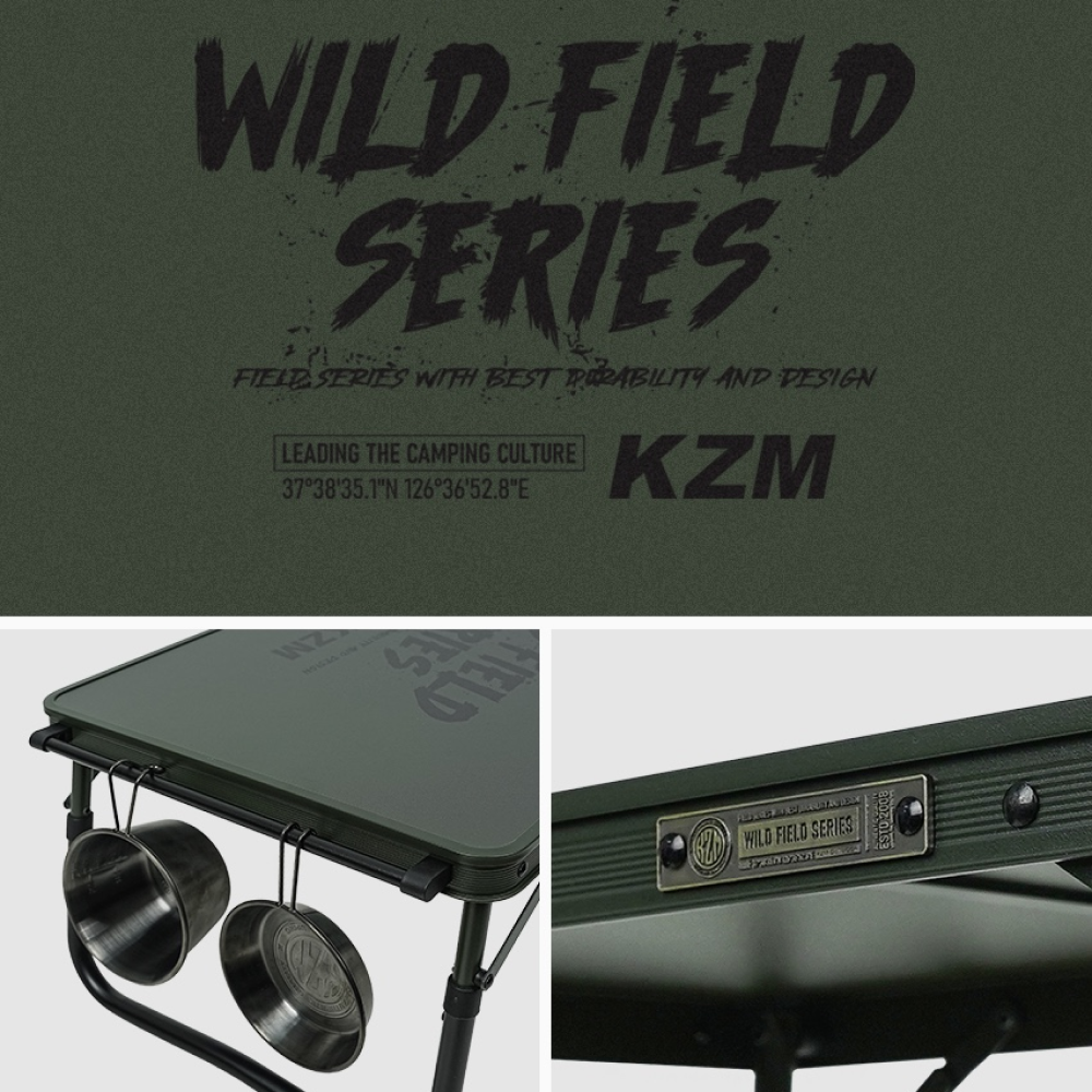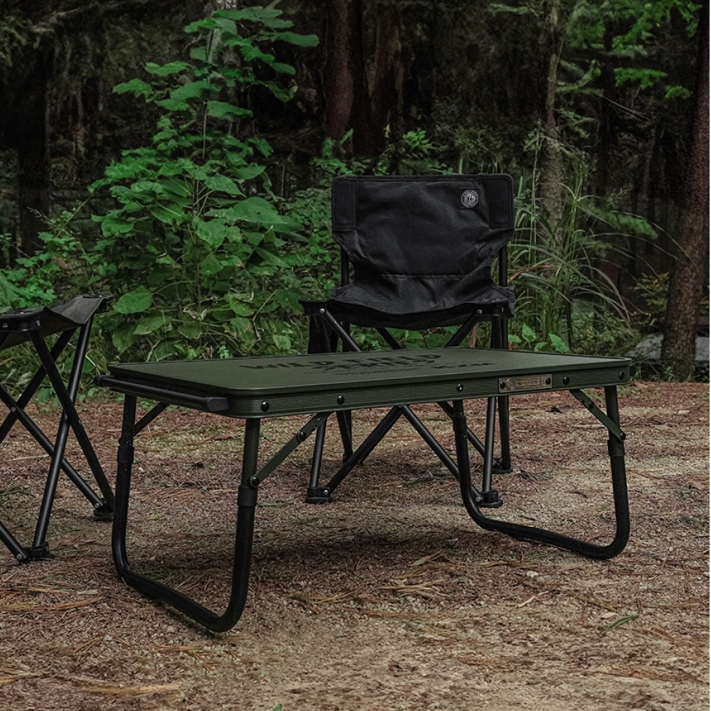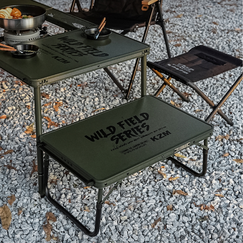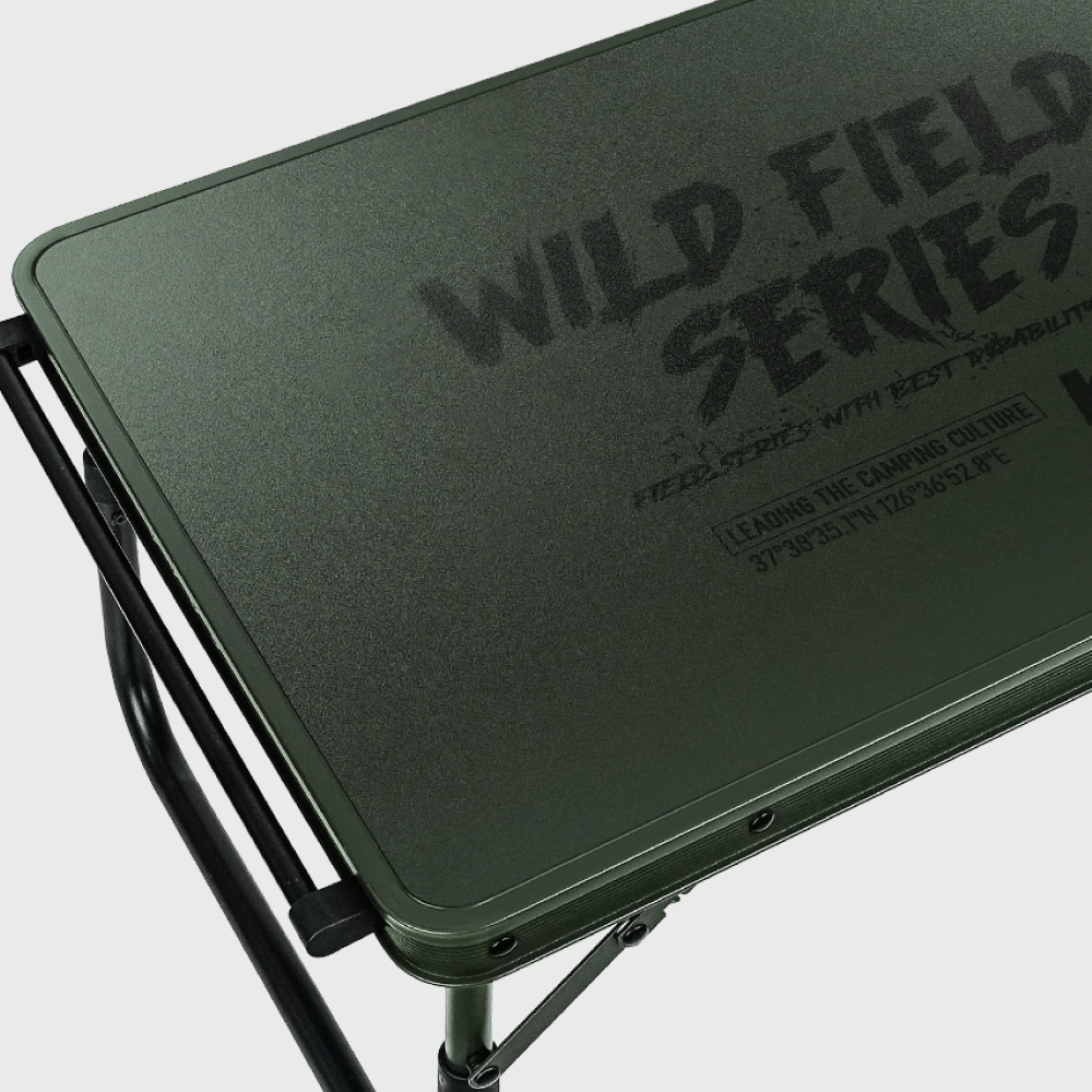 Featuring a rugged logo graphic and olive khaki color scheme, this design captures the unique style of the Wild Field series. Details like the hanger and steel patch add both aesthetic appeal and practical functionality, making it a stylish and versatile camping mini table.