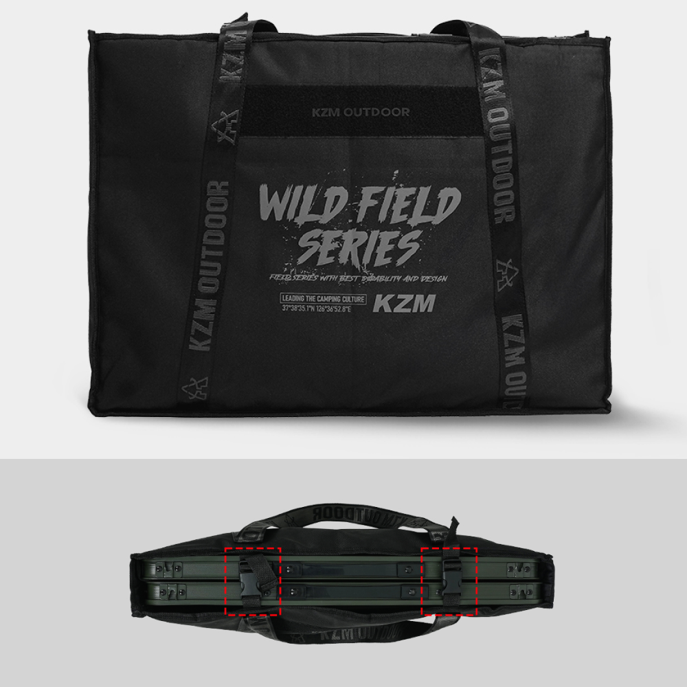 Its compact storage size fits easily in a car trunk, and the buckles at the opening secure the table inside the carry bag to prevent movement during transport.
