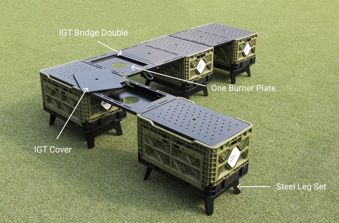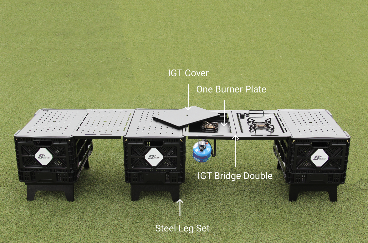The BigAnt 48L Steel IGT Bridge is an essential addition for those seeking modular flexibility in outdoor and cooking setups. Crafted from high-quality aluminum (5052) with a 1.5T thickness, this bridge measures 625x485x18mm and weighs 0.895kg, providing a durable yet lightweight connector for IGT systems. It securely links BigAnt crates, allowing them to integrate seamlessly with other IGT-compatible products for a unified, multi-functional workspace. Manufactured in Korea, the bridge is built for stability and durability, making it a reliable choice for camping, outdoor cooking, and adventure setups.