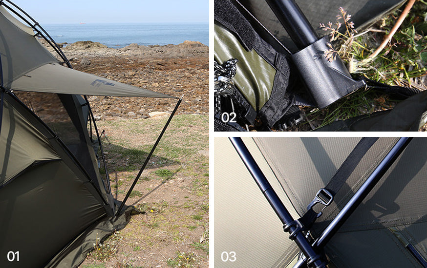 MinimalWorks Agora Vestibule Mesh Window is designed to attach to the Agora Vestibule. It offers a refreshing open atmosphere while protecting against sudden weather changes, allowing for uninterrupted camping comfort. Enjoy a pleasant indoor environment by combining the wide vestibule space with the mesh window.