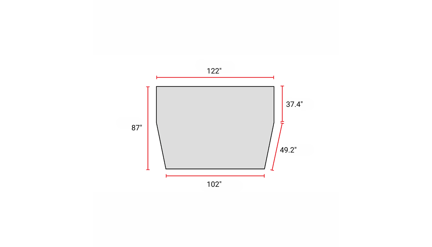 122"(F) x 87" x 102"(B)