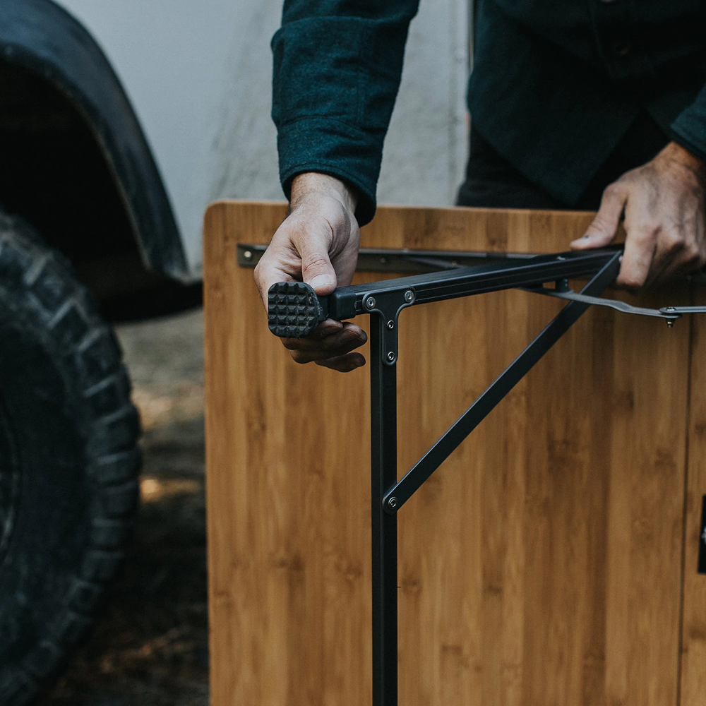 Large one-action bamboo table with instant setup and versatile family-friendly design.