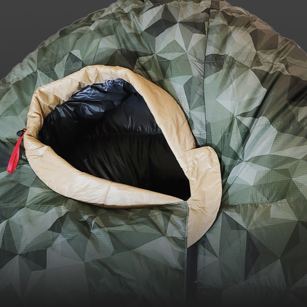 The Brespo Micro Ultra Light Sleeping Bag is engineered to minimize facial exposure, protecting you from cold air while preserving radiant body heat.