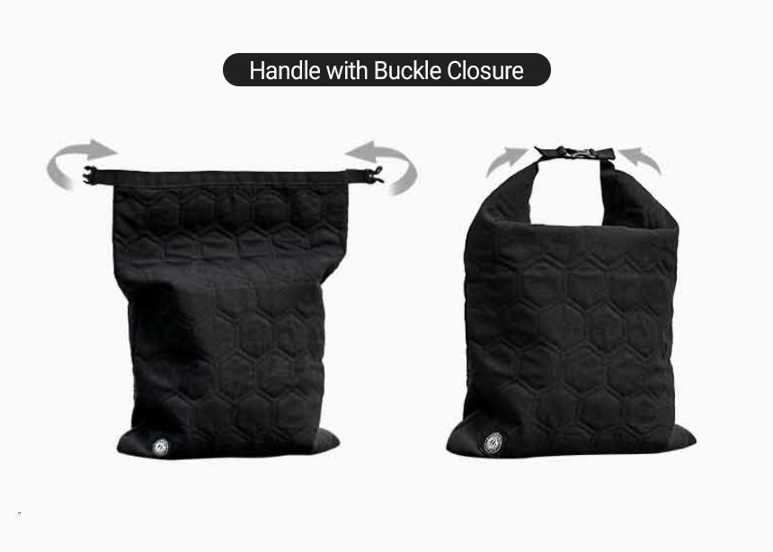 Once buckled, the rolled top transforms into a practical handle for easy carrying.
