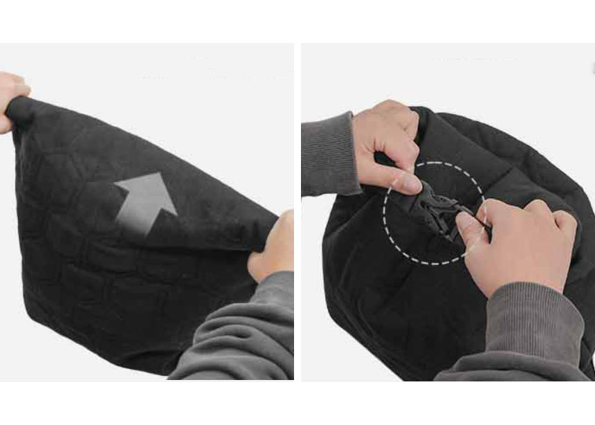 Secure the top by fastening the Velcro, then roll it down and lock with the side buckles.