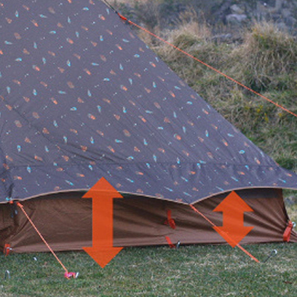 The structure allows the main poles to be freely adjusted, enabling various configurations tailored to the environment. This feature lets you easily set up a comfortable interior space with optimized openness and ventilation.