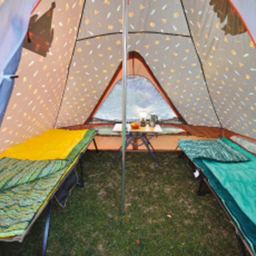A square tipi-style shelter designed for efficient space use and comfortable group camping. The center pole structure creates an open interior with excellent headroom, while breathable, weather-ready fabric helps manage moisture and airflow.