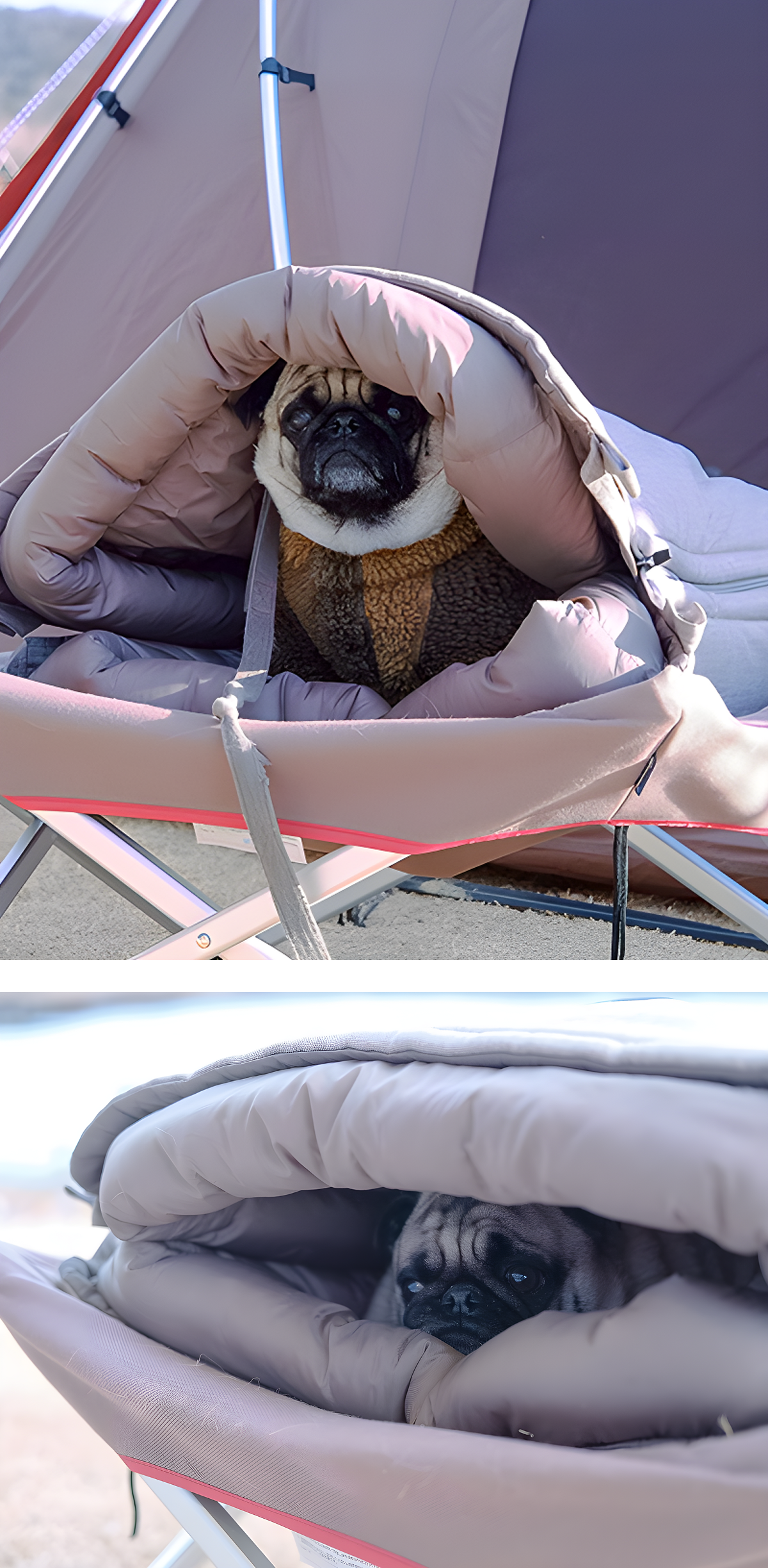The Dog Ofuton Sleeping Bag is designed specifically for small to medium pets, offering both insulation and comfort. Zippers on both sides allow for adjustable opening and the bag neatly stores in its own carry sack.