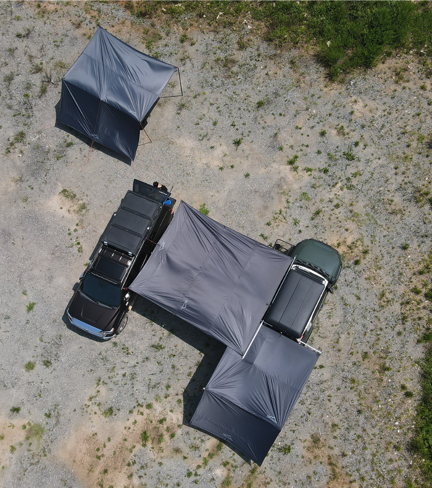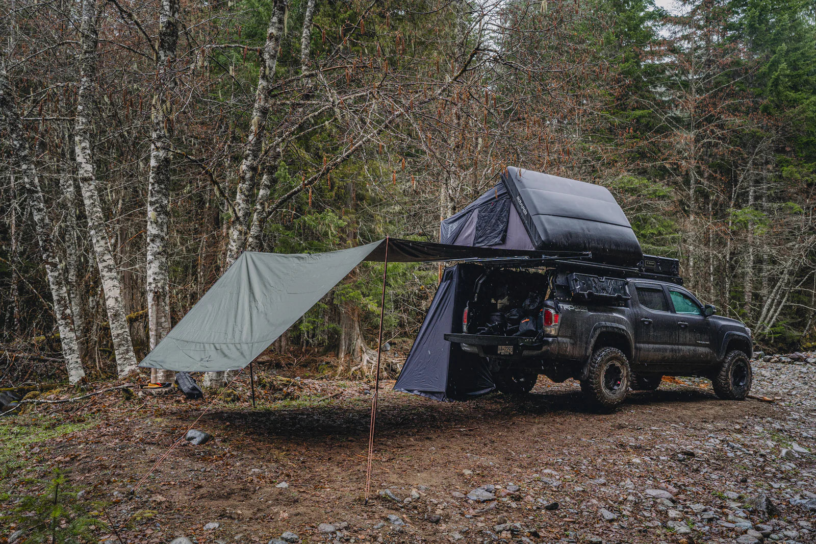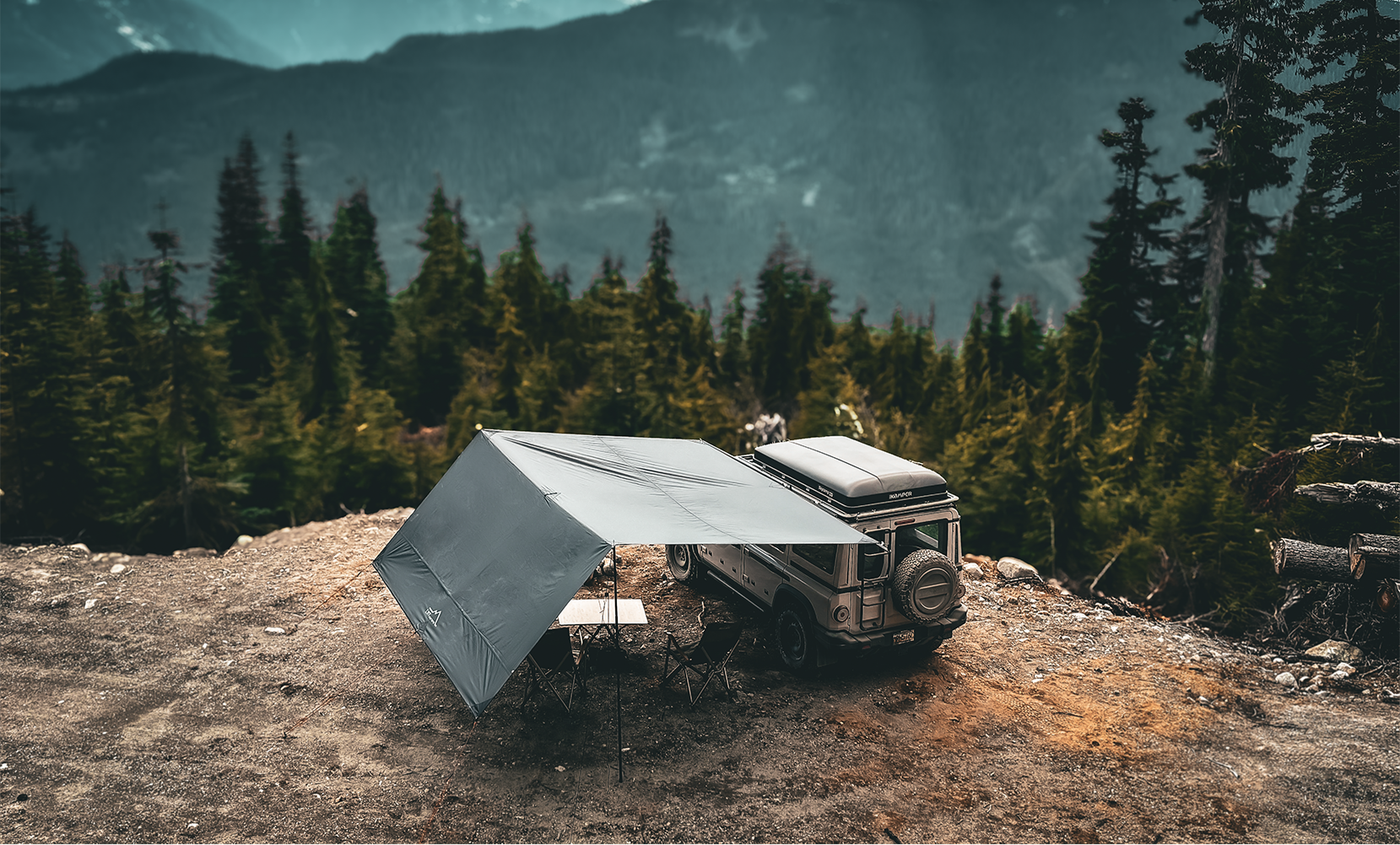 The ultimate outdoor experience! Combine your rooftop tent with an ES Awning for the best camping setup.