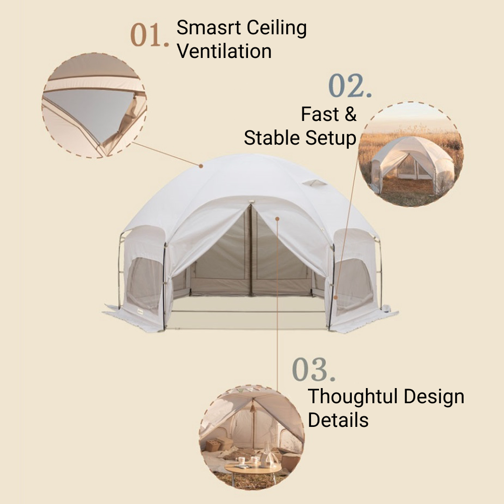 The Evernin Jerry is the ultimate minimalist retreat, featuring an ultra-simple three-pole setup and full curtain-door openness that provides an aesthetic, unobstructed connection to nature.
