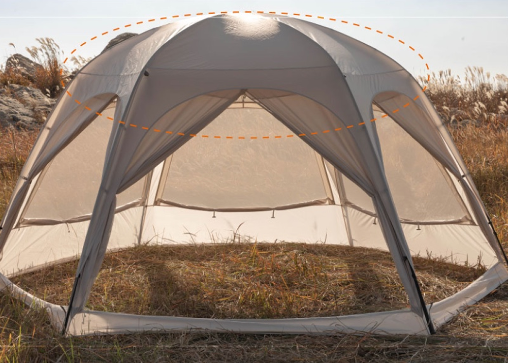 Its spacious layout provides plenty of room to move freely, making it ideal for family camping trips, group outings, or extended stays at the campsite. The balanced structure offers reliable coverage from sun, light rain, and morning dew, helping you stay comfortable throughout the day.