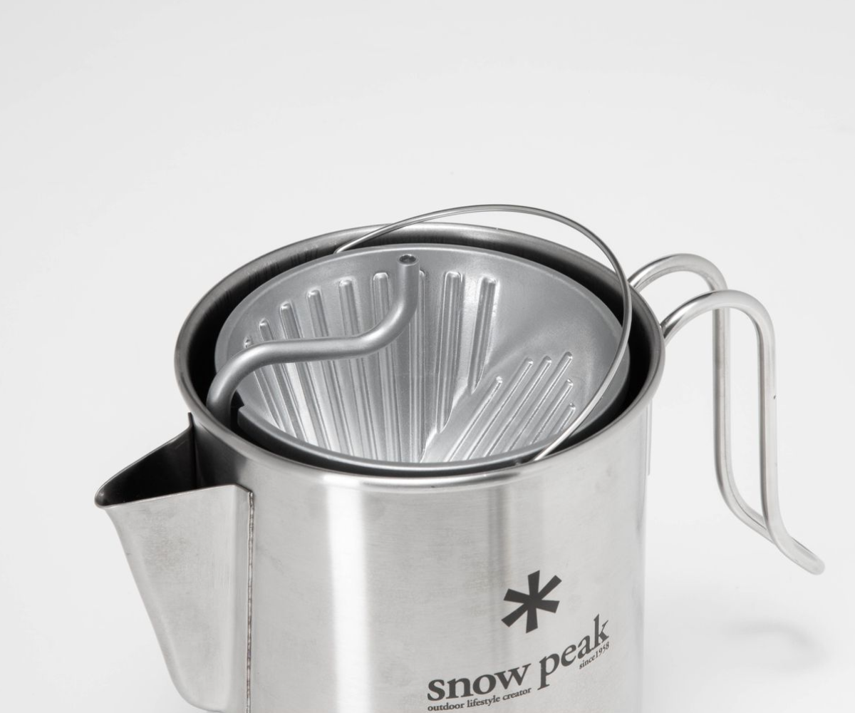 The Snow Peak Field Coffee Master is a compact and versatile brewing system capable of functioning both as a percolator and a pour-over setup. With a 760 ml capacity and a cleverly designed dripper that nests inside the kettle, it is suitable for home use as well as outdoor camping.